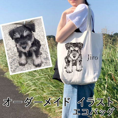 ペットちゃんのお写真をデザイナーがイラストに書き起こして一点一点丁寧にトートバッグにプリントさせていただきます!